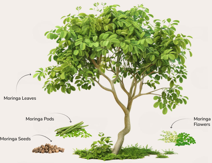 The Moringa tree is rightly called the "Miracle Tree" for its exceptional nutritional value. Every part of the tree—leaves, seeds, pods, and roots—is edible and packed with essential nutrients. Let's explore its powerful benefits and how this superfood can enhance overall well-being.